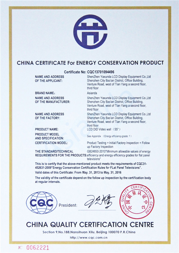 2014年中國節(jié)能產(chǎn)品認(rèn)證證書(英文)