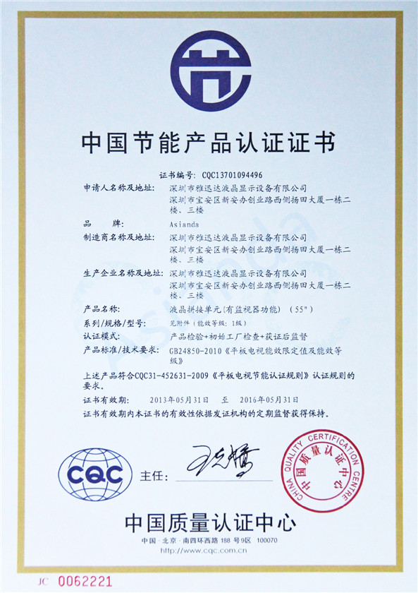2014年中國節(jié)能產(chǎn)品認(rèn)證證書(中文)