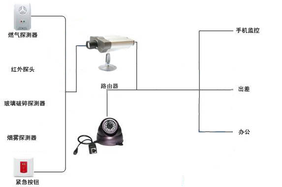 在家設(shè)防模式是指業(yè)主在家時能夠?qū)⒉糠址绤^(qū)設(shè)置為工作狀態(tài),讓系統(tǒng)布防。例如:屋主就寢后,可使室內(nèi)的門窗位移探測器(門窗磁控開關(guān))和客廳的紅外探測器、煤氣感應(yīng)器等處于布防狀態(tài)。
