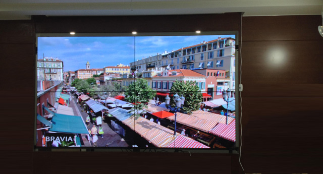 該政府單位安裝的拼接墻是用于宣傳片的播放,故選用拼縫為3.5mm的液晶拼接屏,其安裝的拼接墻的拼縫無線接近“無縫拼接”。針對(duì)其安裝方式,前期客戶與我公司的銷售人員簡(jiǎn)述安裝要求,我公司設(shè)計(jì)師按照客戶要求設(shè)計(jì)效果圖,工程人員在安裝過程中,結(jié)合效果圖與客戶要求,采用液壓支架式安裝。
