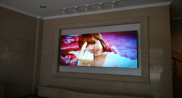 上海市上汽集團(tuán)培訓(xùn)中心多媒體液晶拼接屏的選購(gòu),采用的是雅迅達(dá)公司55寸低亮2*2的液晶拼接屏,液晶拼縫僅3.5mm,屏幕具有高清和標(biāo)清多格式兼容性,能夠智能調(diào)節(jié)亮度,屏壽命超過(guò)50000小時(shí)。其采用墻體凹槽臂掛方式安裝。其它配套設(shè)備有:一臺(tái)1進(jìn)4出HDMI分配器和一個(gè)安卓播放盒。該液晶拼接屏使用HDMI信號(hào)源,主要用于播放上汽集團(tuán)培訓(xùn)信息。安裝事項(xiàng)完畢后,工程人員耐心的演示給客戶看,培訓(xùn)客戶使用??赐晷Ч?,客戶滿意簽收。