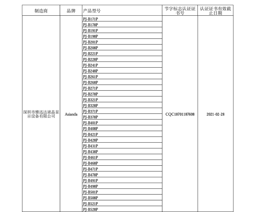 雅迅達(dá)液晶顯示設(shè)備有限公司是國家高新技術(shù)企業(yè),專注液晶顯示產(chǎn)品十余載,節(jié)能高效,質(zhì)量穩(wěn)定,技術(shù)領(lǐng)先、售后服務(wù)專業(yè)到位,是雅迅達(dá)產(chǎn)品入選節(jié)能產(chǎn)品政府采購清單的根本原因,這也是政府部門青睞、認(rèn)可我司的重要體現(xiàn)。雅迅達(dá)也將繼續(xù)布局全國,深耕液晶顯示領(lǐng)域,以節(jié)能降耗為己任,將更多節(jié)能高效,安全環(huán)保的產(chǎn)品推向市場,為國家節(jié)能減排貢獻(xiàn)一份堅(jiān)實(shí)的行業(yè)力量。