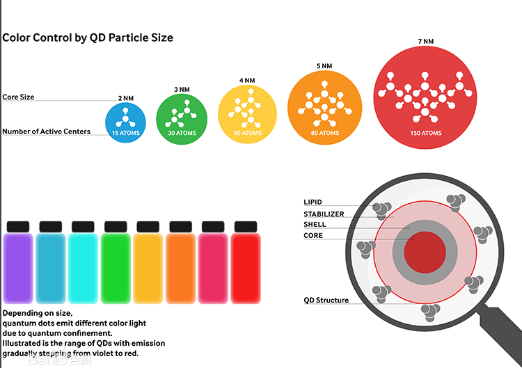 量子點是一種半導體納米晶體,調節(jié)量子點的尺寸大小,我們將會看到不同的顏色,且色彩極其絢爛。量子點顯示技術在色域覆蓋率、色彩控制精確性、紅綠藍色彩純凈度等各個維度已全面升級,被視為全球顯示技術的制高點,也被視為影響全球的顯示技術革命。量子點雖然在二十世紀就有這個概念,但是一直沒有被廣泛應用,雅迅達卻是第一家把量子點技術應用于商業(yè)顯示的廠家。