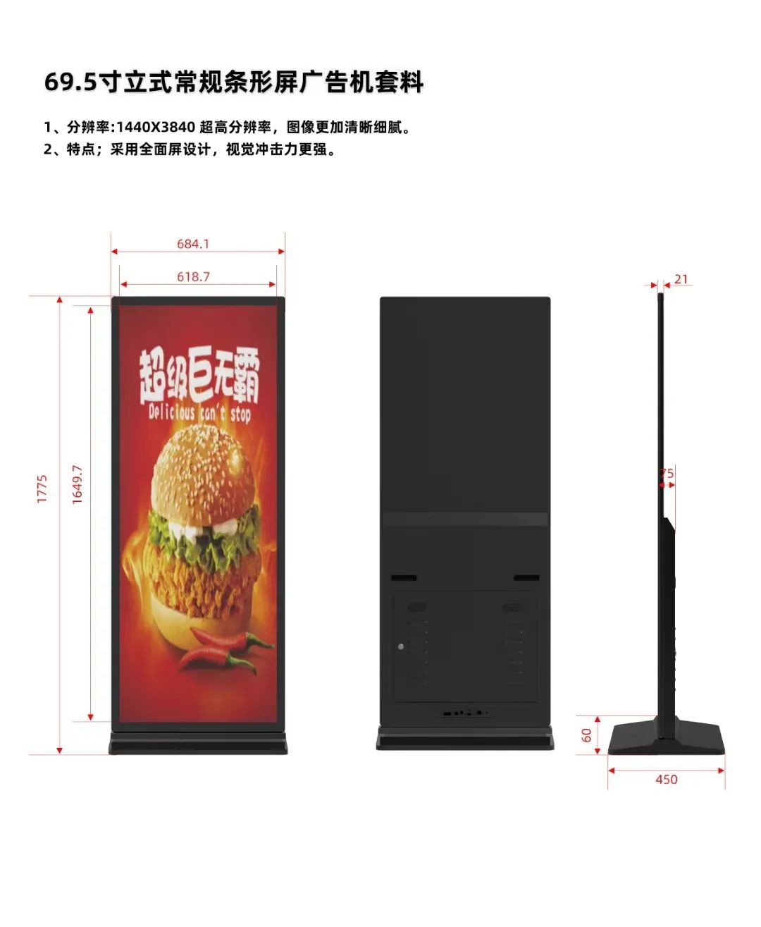 近日,雅迅達憑借對商用顯示領域的深刻理解,將科技創(chuàng)新與實際需求完美結合,打造出新一代立式全面屏商顯,這款引領行業(yè)發(fā)展的旗艦產品。