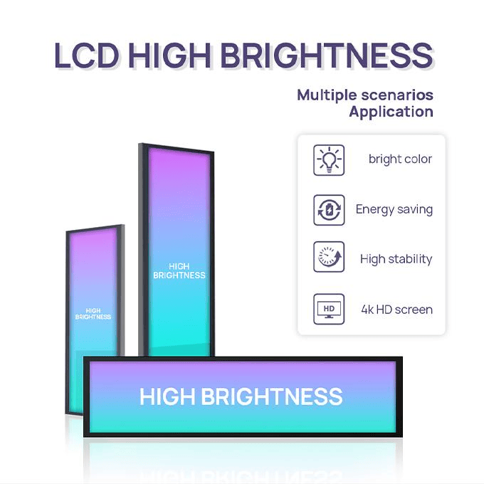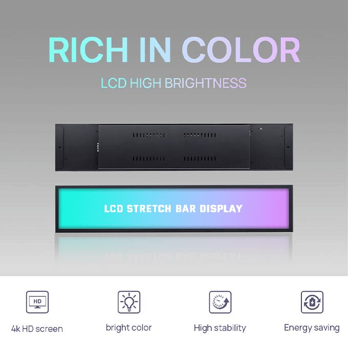 作為專業(yè)的商用顯示設(shè)備,雅迅達智能條形屏采用高品質(zhì)液晶面板,具有超高亮度和對比度,即使在商場明亮的環(huán)境下也能完美呈現(xiàn)畫面細節(jié)。