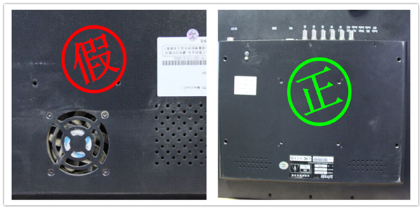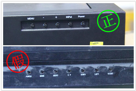 雅迅達正規(guī)液晶監(jiān)視器的LOGO粘貼工整精致。如發(fā)現(xiàn)LOGO做工粗糙,有明顯粘貼痕跡,或噴刷情況,均為假冒產(chǎn)品,如圖1左側(cè)