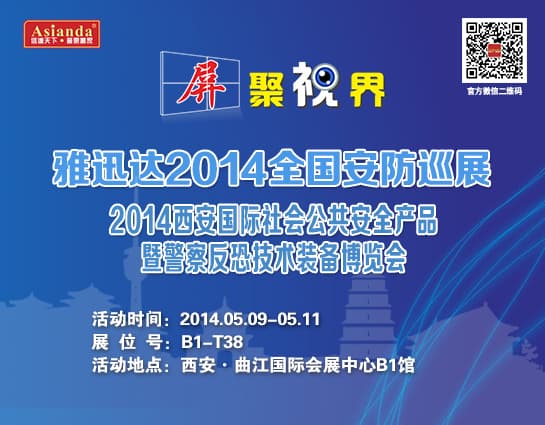 雅迅達(dá)超窄邊液晶拼接墻亮相西安安防展 今日,“2014中國(guó)(西安)國(guó)際社會(huì)公共安全產(chǎn)品暨警察反恐技術(shù)裝備博覽會(huì)”(簡(jiǎn)稱西安安防展)在西安曲江國(guó)際會(huì)展中心隆重召開。后端顯示領(lǐng)域的領(lǐng)導(dǎo)品牌、中國(guó)平安城市建設(shè)推薦品牌—...