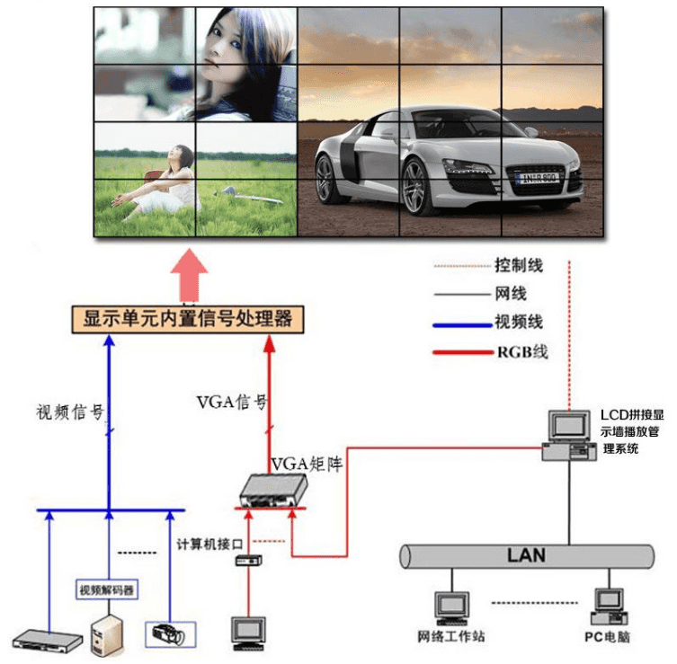 大屏拼接技術(shù)系統(tǒng)與常見的大屏拼接方式 大屏拼接已經(jīng)越來越受到的用戶的認可,也得到了越來越多的用戶使用,但是很多人都不太清楚大屏拼接技術(shù)是什么一回事,拼接屏廠家雅迅達就給大家簡單的講解一下: